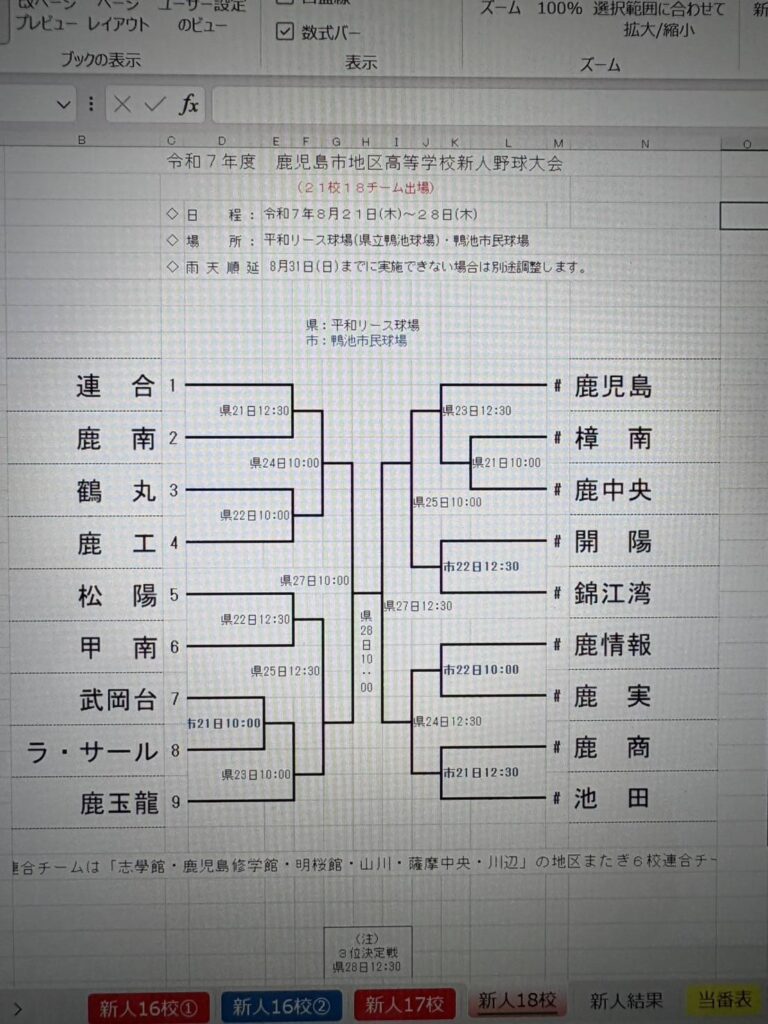 鹿児島市地区新人大会 組み合わせ表